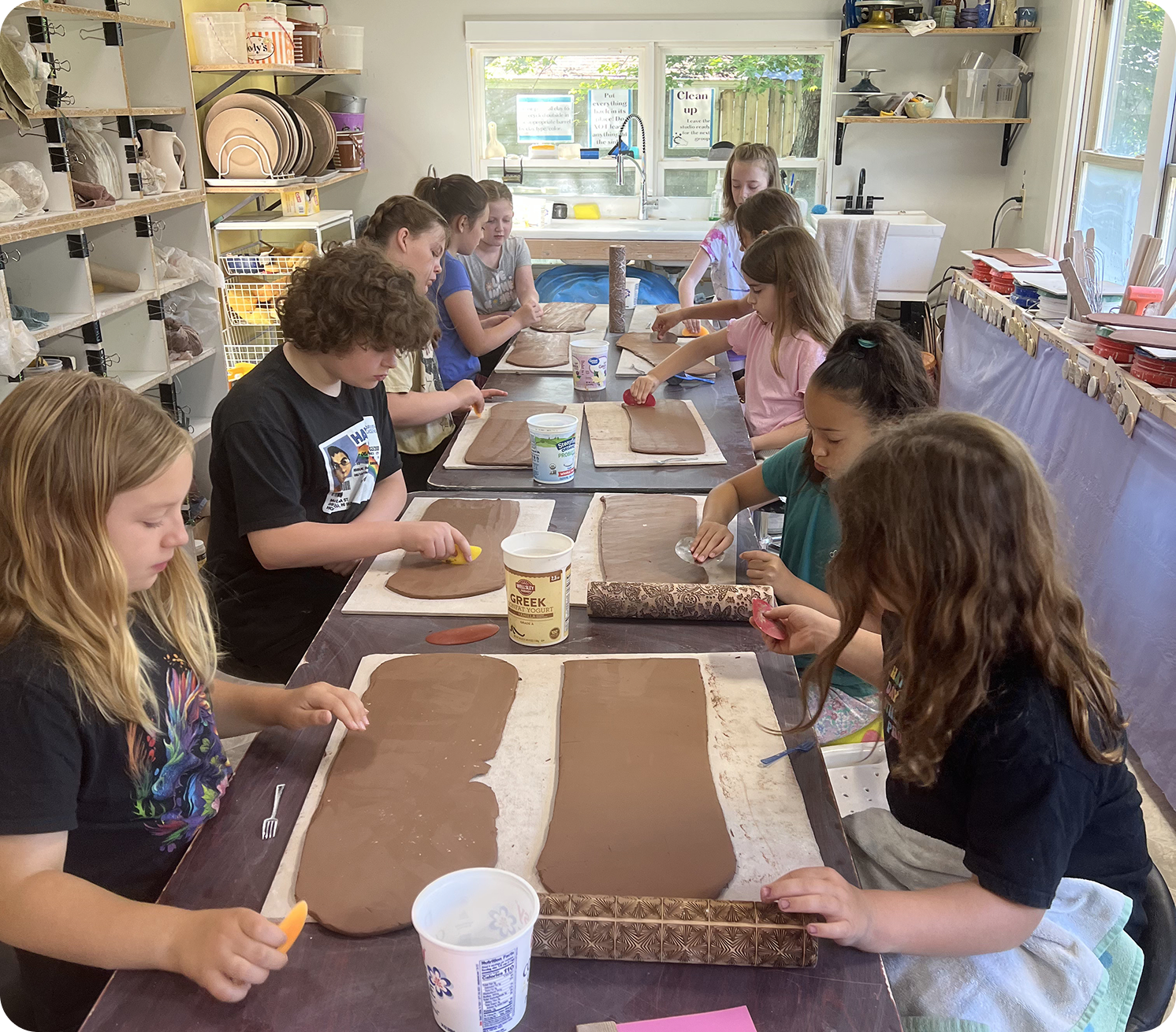 Work independently during open studio hours in a well-equipped space designed for creative flow. Access wheels, handbuilding stations, glazes, and more—plus the quiet hum of fellow makers at work.