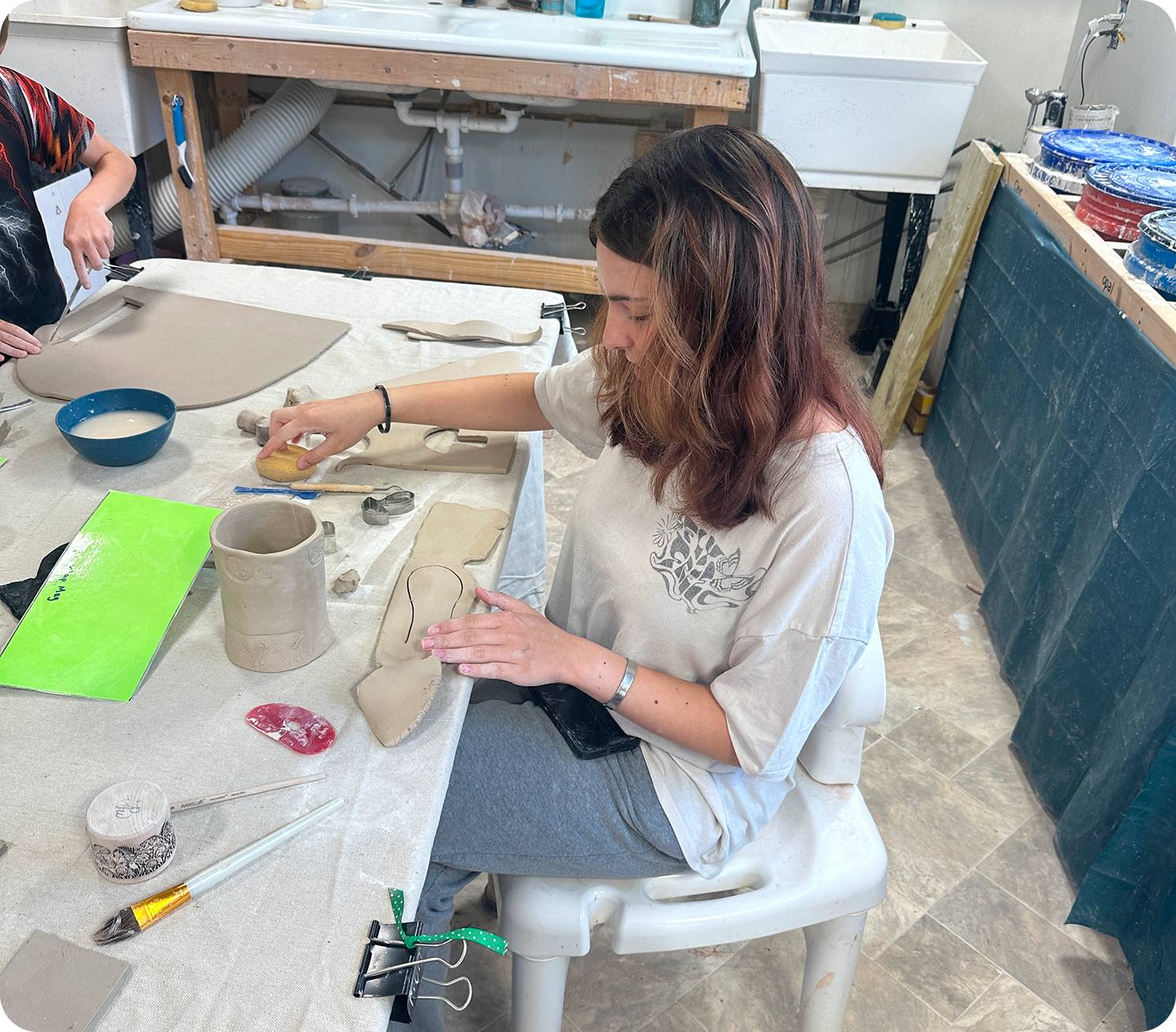 Wheel throwing or handbuilding techniques, glazing, firing process (includes instruction, studio access, tool use)